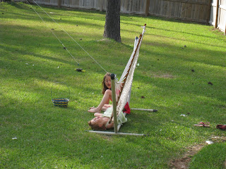 The kids flipping out of the hammock.